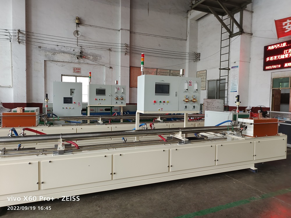 洛陽(yáng)用功感應(yīng)加熱設(shè)備公司提供的不銹鋼管在線光亮退火成套設(shè)備,是針對(duì)金屬管廠家在線光亮退火生產(chǎn)需要而專門設(shè)計(jì)的成套性設(shè)備,根據(jù)需方退火工藝要求,該成套設(shè)備由IWH系列全固態(tài)IGBT數(shù)字感應(yīng)加熱電源、氣體保護(hù)密封冷卻裝置、紅外線恒溫裝置、軟水-水循環(huán)冷卻系統(tǒng)、智能型包含plc電控系統(tǒng)及觸摸屏顯示等組成系列生產(chǎn)線。